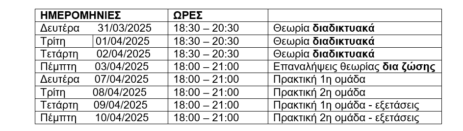 Η θεωρητική κατάρτιση θα πραγματοποιηθεί σε ομάδα έως 24 ατόμων.